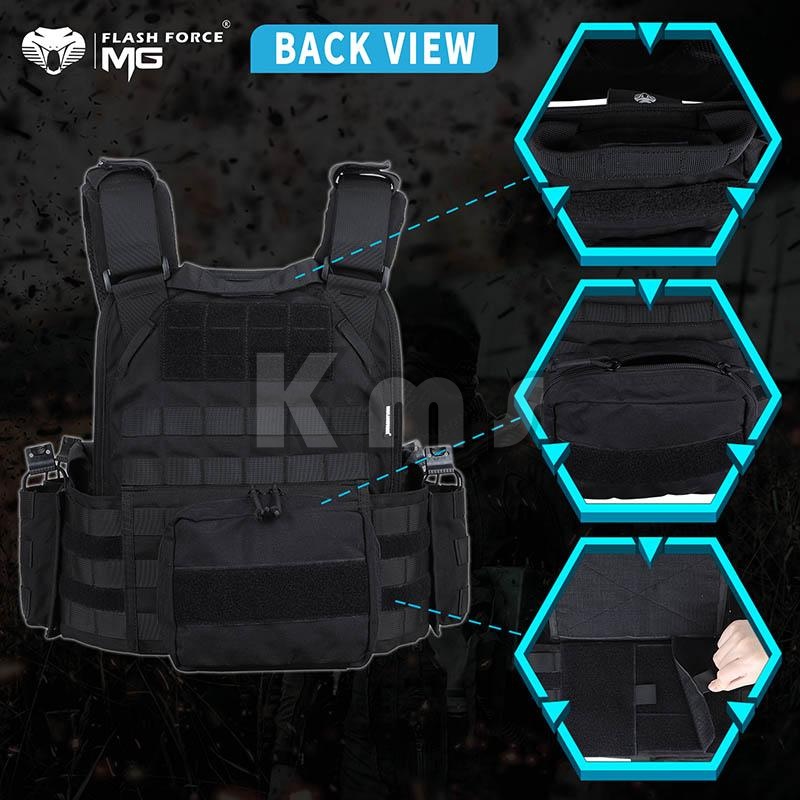 KMS Modular Plate Carrier, compatível com placas, aceita placas rígidas 10x12, armaduras macias. Feito de náilon.